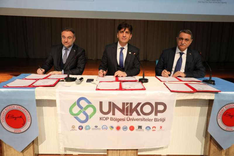 Yozgat Bozok Üniversitesi Rektörü Prof. Dr. Evren Yaşar, Kırşehir Ahi Evran Üniversitesi Rektörü Prof. Dr. Mustafa Kasım Karahocagil ve KOP Bölge Kalkınma İdaresi Başkanı Dr. Murat Karakoyunlu desteklenen projelerin protokol imzasını gerçekleştirdi.