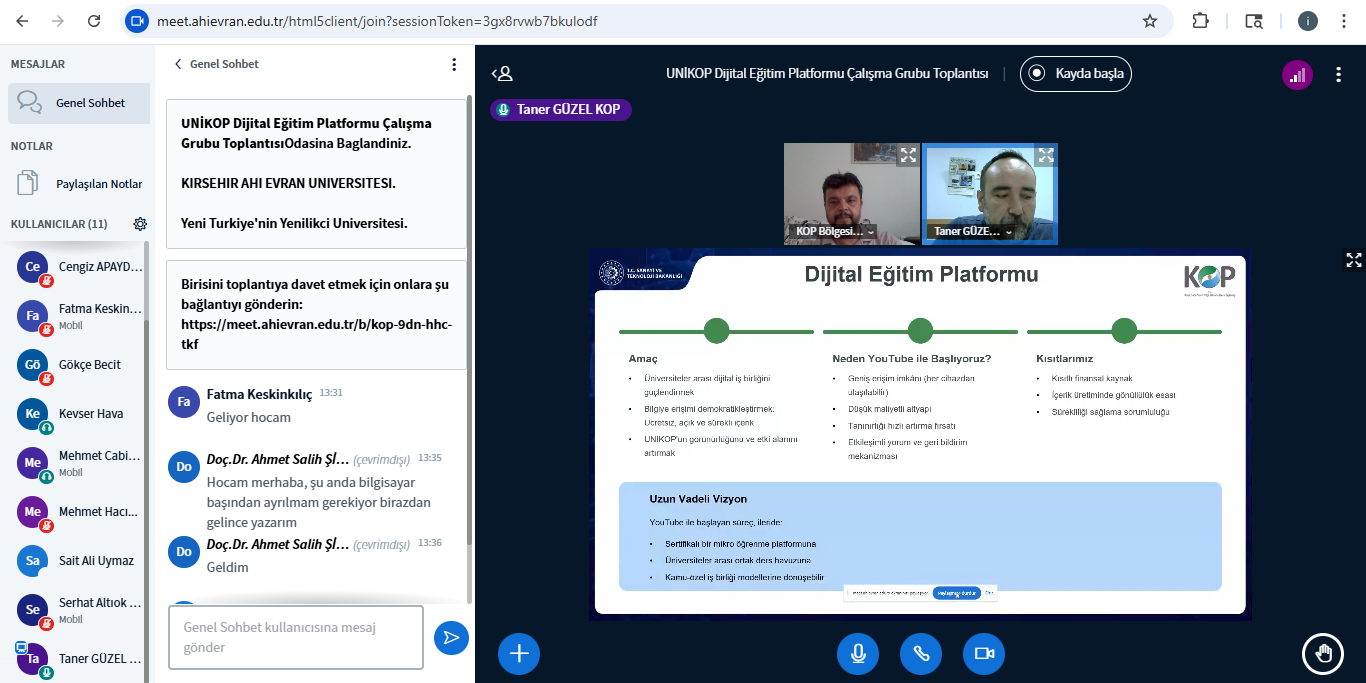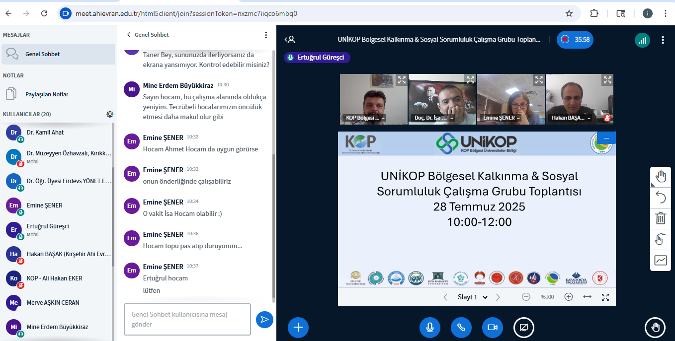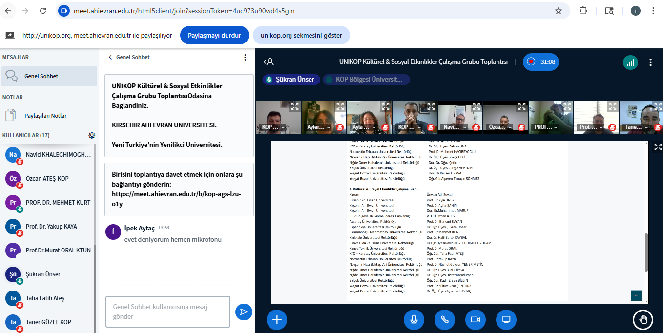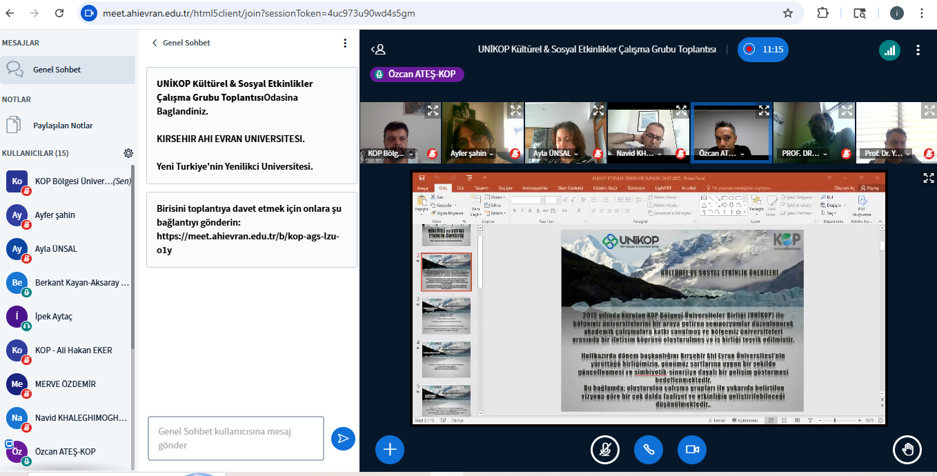 Kırşehir Ahi Evran Üniversitesi Dönem Başkanlığında UNİKOP çalışma grupları Üniversite Koordinatörleri çalışmaları ve Strateji Planlama Kurulu onayıyla.