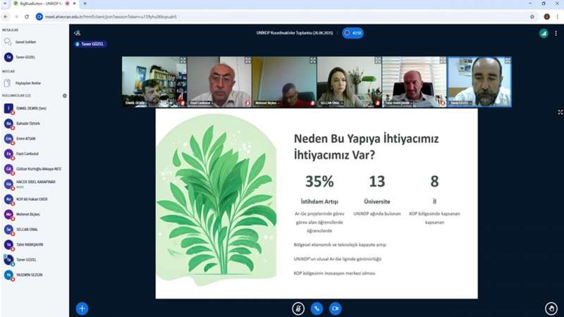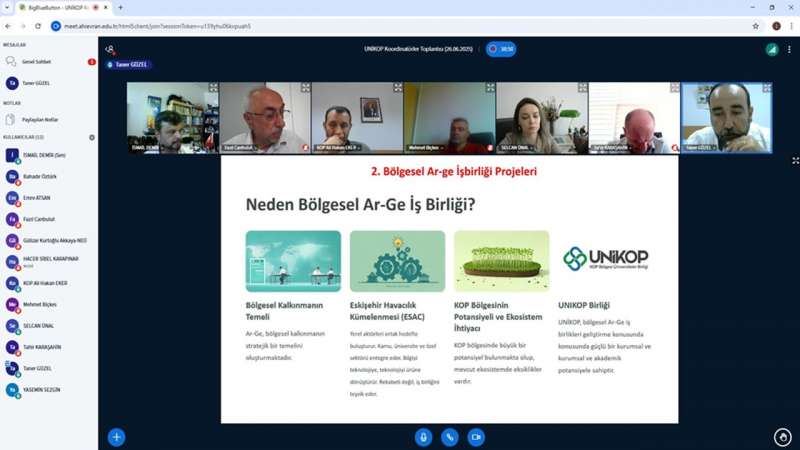 Kırşehir Ahi Evran Üniversitesi ile Konya Ovası Projesi Bölge Kalkınma İdaresi Başkanlığı (KOP) tarafından online olarak gerçekleştirilen toplantıya Aksaray Üniversitesi UNİKOP Koordinatörü Prof. Dr. Tahir KARAŞAHİN, Kapadokya Üniversitesi UNİKOP Koordinatörü Doç. Dr. Fazıl CANBULUT, Karamanoğlu Mehmetbey Üniversitesi UNİKOP Koordinatörü Doç. Dr. Hacer Sibel KARAPINAR, Kırıkkale Üniversitesi UNİKOP Koordinatörü Dr. Öğr. Üyesi Yasemin SEZGİN, Konya Teknik Üniversitesi UNİKOP Koordinatörü Doç. Dr. Mehmet YILDIRIM, KTO - Karatay Üniversitesi UNİKOP Koordinatörü Dr. Öğr. Üyesi Selcan ÜNAL, Necmettin Erbakan Üniversitesi UNİKOP Koordinatörü Doç. Dr. Gülizar KURTOĞLU AKKAYA, Nevşehir Hacı Bektaş Veli Üniversitesi UNİKOP Koordinatörü Prof. Dr. Durdu Mehmet BİÇKES, Niğde Ömer Halisdemir Üniversitesi UNİKOP Koordinatörü Dr. Öğr. Üyesi Emre ATSAN, Selçuk Üniversitesi UNİKOP Koordinatörü Prof. Dr. Bahadır ÖZTÜRK ve Konya Ovası Projesi (KOP) Bölge Kalkınma İdaresi Yönetim ofisi temsilcileri Ali Hakan EKER ve Taner GÜZEL katılım sağladı. Toplantı Kırşehir Ahi Evran Üniversitesi UNİKOP koordinatörü Doç. Dr. İsmail DEMİR’in moderatörlüğünde ve Konya Ovası Projesi (KOP) Bölge Kalkınma İdaresi Yönetim ofisi temsilcisi Taner GÜZEL’in sunumu 26 Haziran 2025 tarihinde saat 14:00-17:00 saatleri arasında online olarak gerçekleştirildi. Toplantıda, UNİKOP iş birliği alanlarının belirlenmesi ve Strateji Planlama Kuruluna bilgi hazırlanması amacıyla dijital eğitim, ortak ders, Ar-Ge iş birlikleri, akademik ve öğrenci hareketliliği, ortak staj ve kariyer gelişimi, girişimcilik ve inovasyon merkezleri, bölgesel kalkınma ve sosyal sorumluluk ve uluslararası iş birlikleri ele alındı.